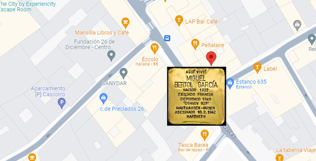 Una de las nuevas 'stolpersteine' que hay en Lavapiés-Embajadores | XLAVAPIÉS Cada stolpersteine que se coloca en la calle, delante del portal de un edificio, habla del vecino o vecina que nació y vivió en ese lugar y que acabó en un campo de concentración nazi. Son piedras que luchan contra el olvido gracias a la iniciativa de la fundación creada por el alemán Gunter Demnig y a sus voluntarios. En Madrid son Isabel Martínez y Jesús Rodríguez los encargados de organizar estos actos de homenaje. En Lavapiés-Embajadores hay ya 13 de estas pequeñas baldosas doradas y en el último pleno de la Junta de Centro se ha dado el visto bueno a que en el distrito se coloquen 7 más, estando 5 de ellas en este barrio, por lo que en breve sus calles sumarán 18 stolpersteine. Son las correspondientes a Miguel Bertol García (Embajadores 23 -antiguo 27-), Ricardo Cuenca Zamora (Huerta del Bayo 4 -antiguo 6-), Pedro Pallarés Ferrer (Santa Anta 25 – antiguo 29-31-), Antonio Paredes Martínez (Embajadores 4) y Ángel Trevijano García (Santa Ana 16 -antes 18-). Fuera ya de Embajadores, aunque también en Centro, se colocarán otras dos stolpersteine en memoria de Jesús Velasco Echave (calle Madera 47 -antiguo 49-) y Manuel Manzanares del Val (Don Pedro 5). Son los mismos familiares de estas personas, víctimas del nazismo y del fascismo, los que financian los 132 euros que cuesta la producción y colocación de las stolpersteine. Entre 600 y 700 vecinos de Madrid acabaron en campos de concentración. Alrededor de 9.000 españoles sufrieron idéntica suerte. La mayoría se habían exiliado a Francia huyendo de las represalias del bando nacional al acabar la Guerra Civil o durante la contienda. Muchos cruzaron los Pirineos en el invierno de 1939, acabando en campos de detención franceses primero y, luego, en campos de exterminio alemanes. El gobierno franquista no quiso saber nada de los capturados por los nazis en Francia. Dijo que ya no eran españoles. Convirtiéndolos en apátridas se facilitó que acabaran en campos de concentración. LOS NUEVOS HOMENAJEADOS EN LAVAPIÉS LAS 13 ‘STOLPERSTEINE’ QUE YA ESTÁN EN LAS CALLES DEL BARRIO STOLPERSTEINE