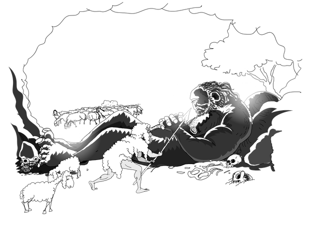 “Es un hijo de un dios, pero no es un dios, es un titán, un falso Dios. Se come a los hombres y cría ovejas.” y siguió: